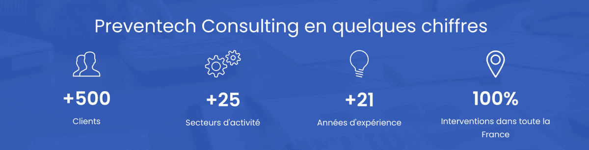 Fondee en 2004 et basee a Saint-Ouen, Preventech Consulting s’est imposee comme un acteur de reference en matiere de prevention des risques professionnels et d’amelioration de la qualite de vie et des conditions de travail (QVCT). En plus de vingt ans d’activite, le cabinet a accompagne plus de 500 clients dans 25 secteurs d’activite, aussi bien dans le secteur prive que dans la fonction publique, avec une forte implantation dans les domaines paritaire et medico-social.
